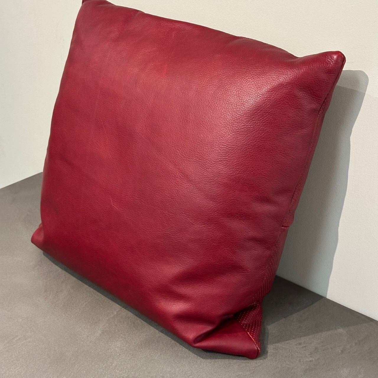 ■イタリア製 総革フェザークッション 50cm角 ROSSO
