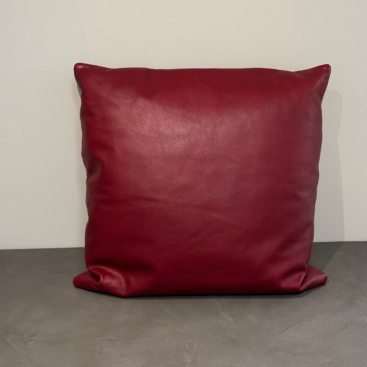 しなやかで上質なセミアニリン染めの本革製のクッションです。高品質なソファを作ることで知られるイタリアの工場でなめしから染色まで行い、1点づつ丁寧に作られています。